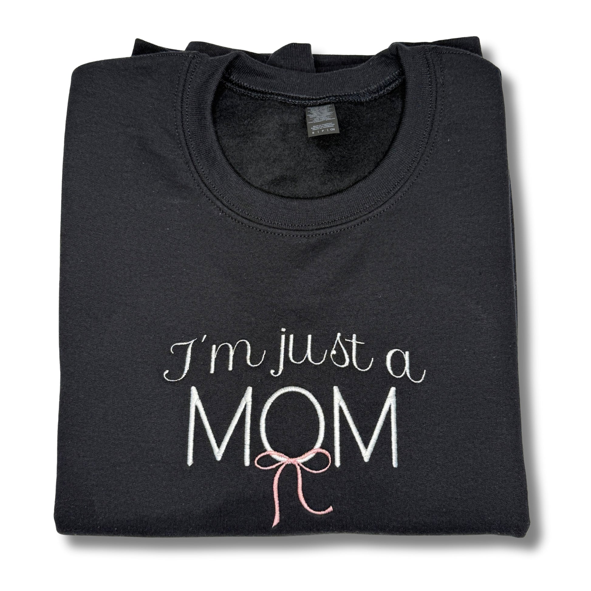 Created with the intention of giving Mamas something cute to wear that is also cozy. Motherhood is one of the most challenging yet rewarding jobs in the world. There may be times when you are running late for a soccer game or a teacher conference and need to put something on real quick. That is where our soft and comfortable Mom sweatshirt comes in. This crewneck is embroidered with the words "I'm just a MOM" and a pink bow on the "O." So if you are a Mama or know a Mom who loves bows, this is the perfect blend waiting to be worn by you!